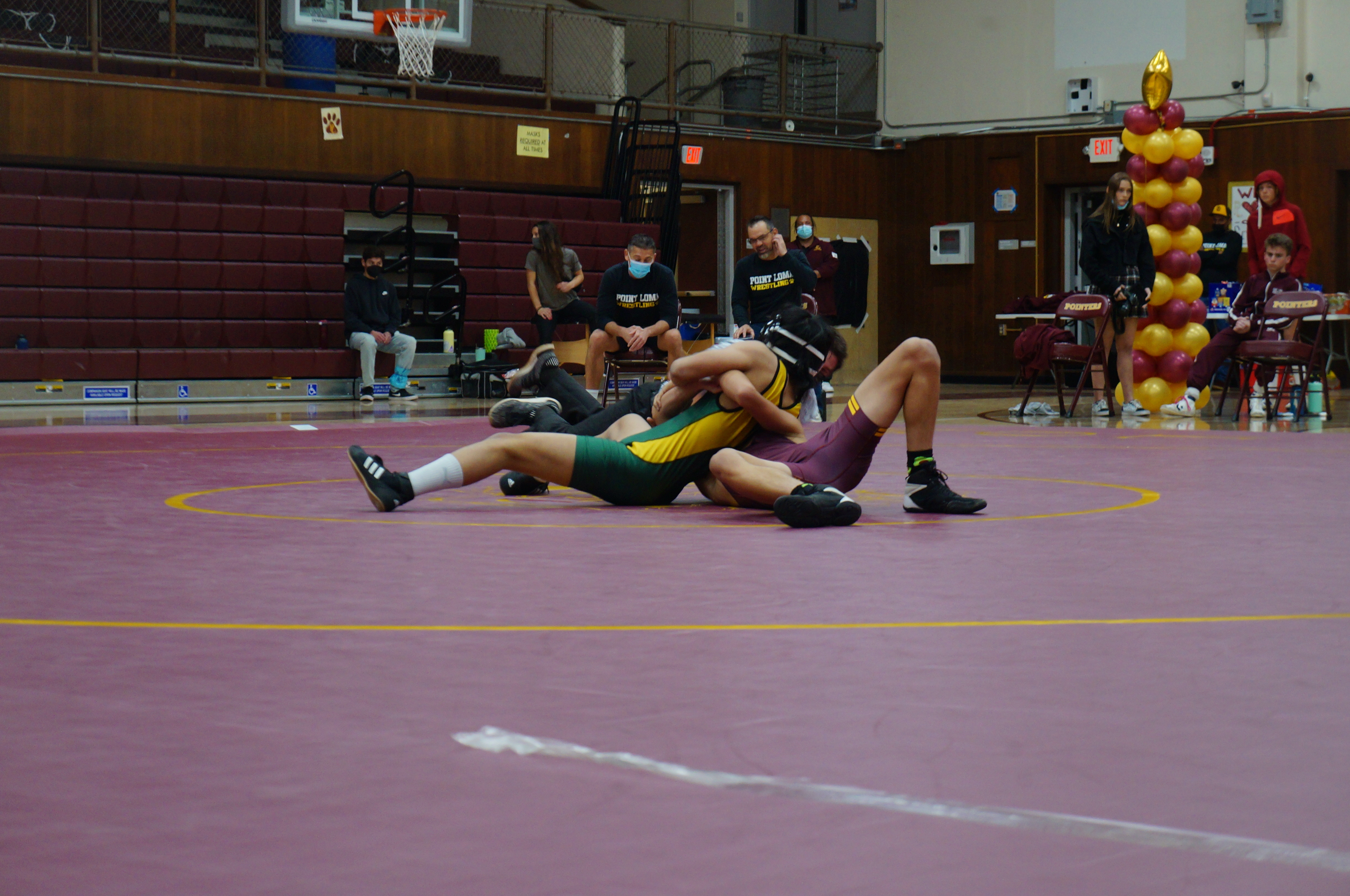 Junior Dominic Perez also scored a fall after a close call on his back. Two lone losses came to Thomas Luhta and Jared Hollander who wrestled up a weight class against the Point Loma star wrestler who would take fifth place at the San Diego Masters two weeks later.