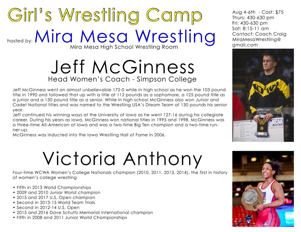 Mira Mesa Girls Wrestling Camp