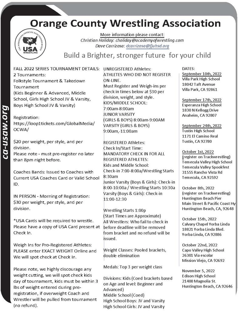 Fall Wrestling Tournaments:
