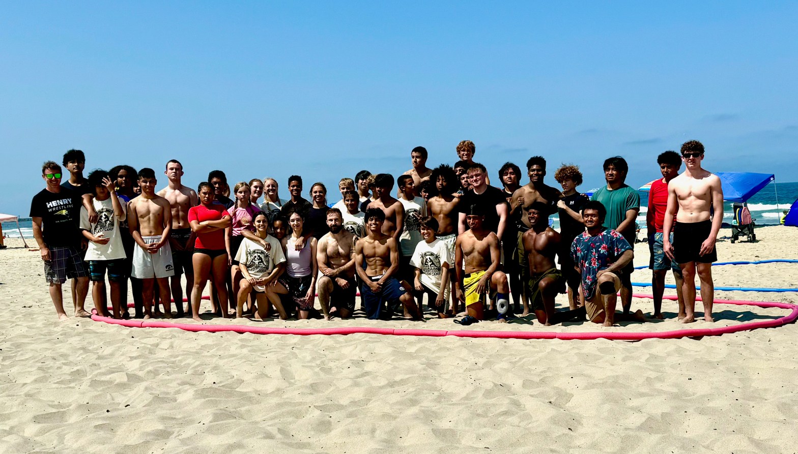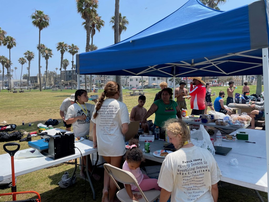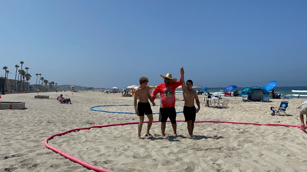 On Friday July 26th, Patrick Henry High School Wrestling Club hosted San Diego’s first sanctioned Beach Wrestling Tournament. Forty wrestlers from all over San Diego and a few venturing from as far as Ventura, Menifee and Sacramento, gathered at Mission Beach, just south of Belmont Park. Beach Wrestling has been a end of summer tradition at Patrick Henry for the past three years. Last year it was added to the last day of the San Diego Wrestling Champ Camp that Patrick Henry hosted. This year Patrick Henry partnered with USA Wrestling and United World Wrestling, to put on an officially sanctioned Beach Wrestling tournament.