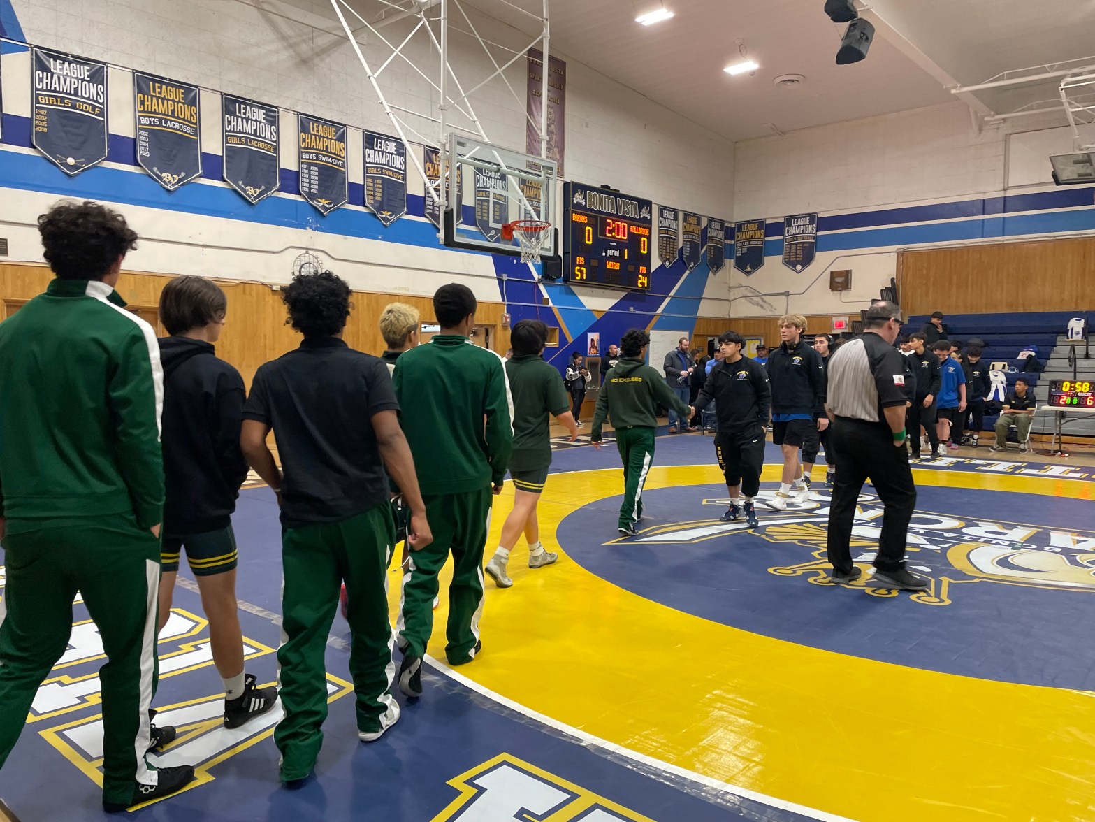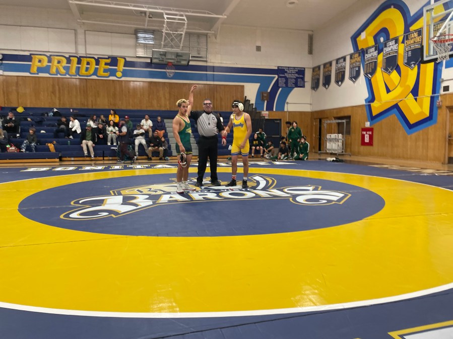 The team wrestled well against Fallbrook with six wrestlers winning by forfeit or fall including freshmen Dominic Pavone. Team edged out Fallbrook by one point, wining by criteria.