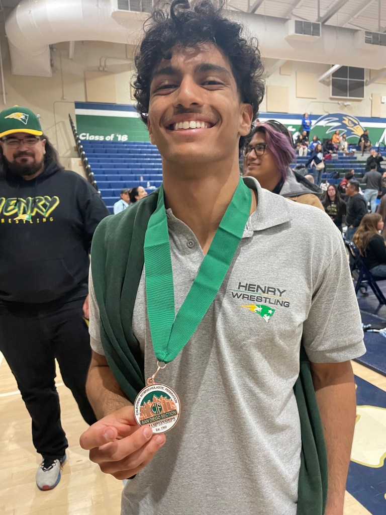 On the girls side two girls for Patrick Henry wrestled at Division 1 Championships. Girls wrestling continued to expand this year, adding another Division. Junior Aubrey Lund placed for her third time, placing 4th and Sophomore Maverick Garcia placed 6th, putting both as top 16 wrestlers in San Diego County.